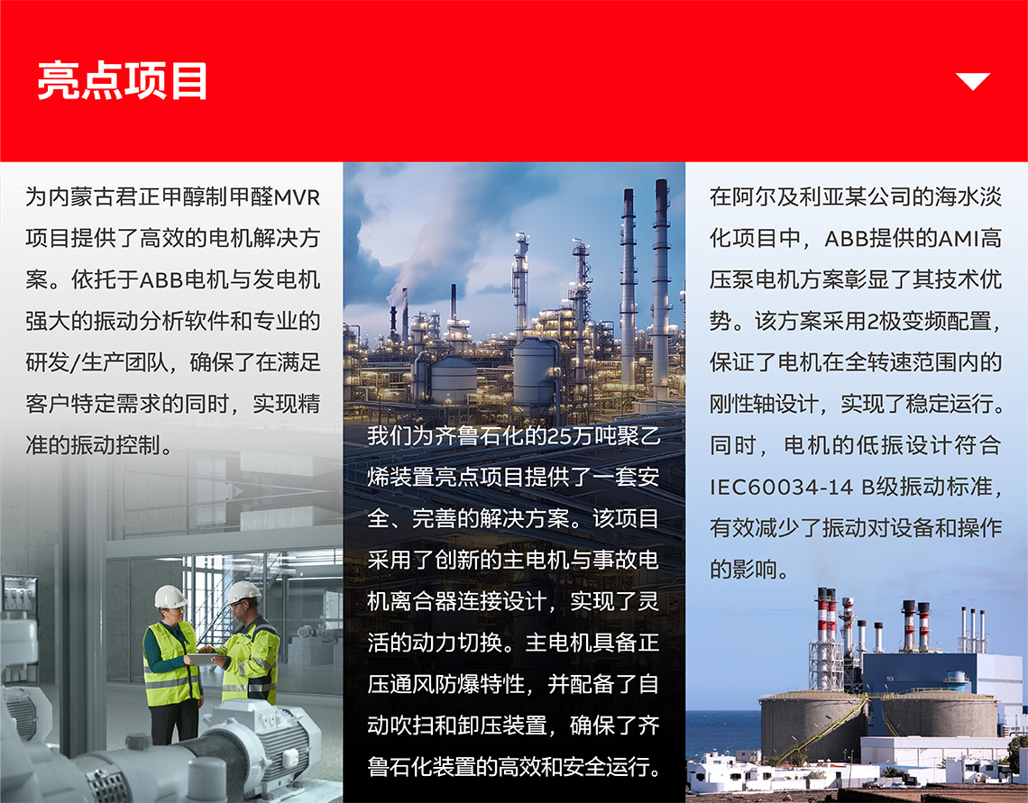 作为电力和自动化技术的全球先锋之一,ABB以其超过140年的深厚历史和创新精神,引领着行业发展的新潮流。在电机与发电机这一核心领域,ABB不断突破技术界限,提供包括IEC低压电机、大型工业电机、高效发电机、精准NEMA电机以及先进的伺服电机在内的全系列产品。这些产品不仅代表了ABB电机与发电机的技术实力,也为全球客户提供了可靠、高效的动力解决方案 。