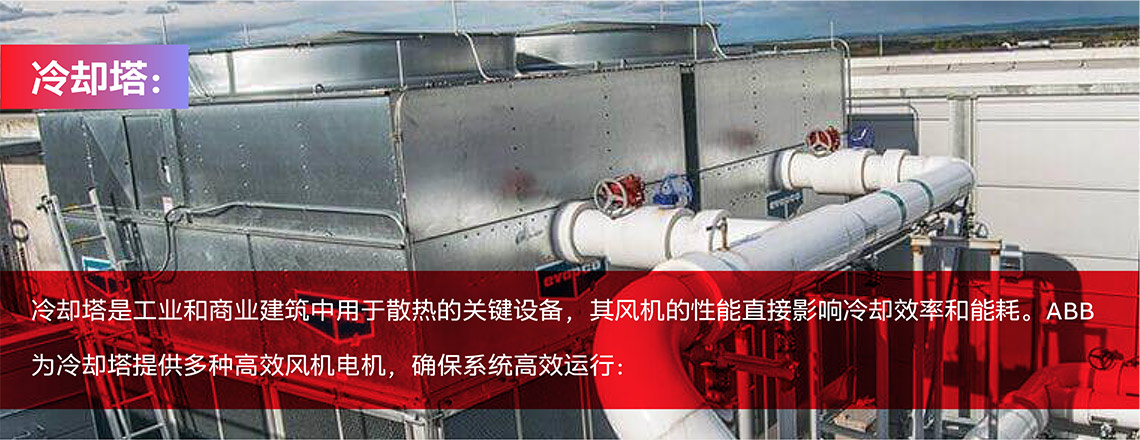 冷却塔——永磁直驱方案:永磁直驱方案:在冷却塔永磁直驱项目中,ABB与国内冷却塔头部OEM合作,提供了功率范围1.1-30千瓦、转速区间200-400转的电机。采用永磁直驱技术,省去了减速箱和皮带轮传动,系统效率与可靠性大幅提升,平均节能42%。此外,安装便捷,维护量减少,设备紧凑且静音效果显著,无油环境更洁净,为客户带来了高效、可靠的运行体验。