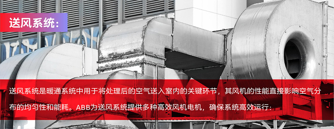 ABB电机与发电机,以高效电机技术为核心,为暖通行业提供节能降耗的系统性解决方案。我们的产品组合覆盖暖通核心环节,精准匹配您的需求: